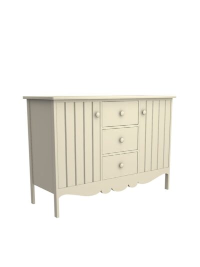 An extra heavy outside layer of maple or birch provides a hard smooth surface for applying our paint coatings. All glues used in construction are low formaldehyde and non-toxic. Drawers include hidden self closing glides. All beadboard panels are machined to exact spacing widths for a pleasing finished look. This premium furniture is both stylish and durable.
